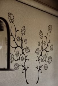 Relaksujący widok na ogród, podkreślający kameralny i spokojny charakter wnętrza.
