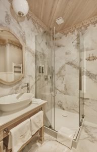 Pokój oferuje prywatną, stylową łazienkę wyposażoną w prysznic, suszarkę do włosów, miękkie szlafroki, kapcie oraz starannie dobrany zestaw bezpłatnych kosmetyków.